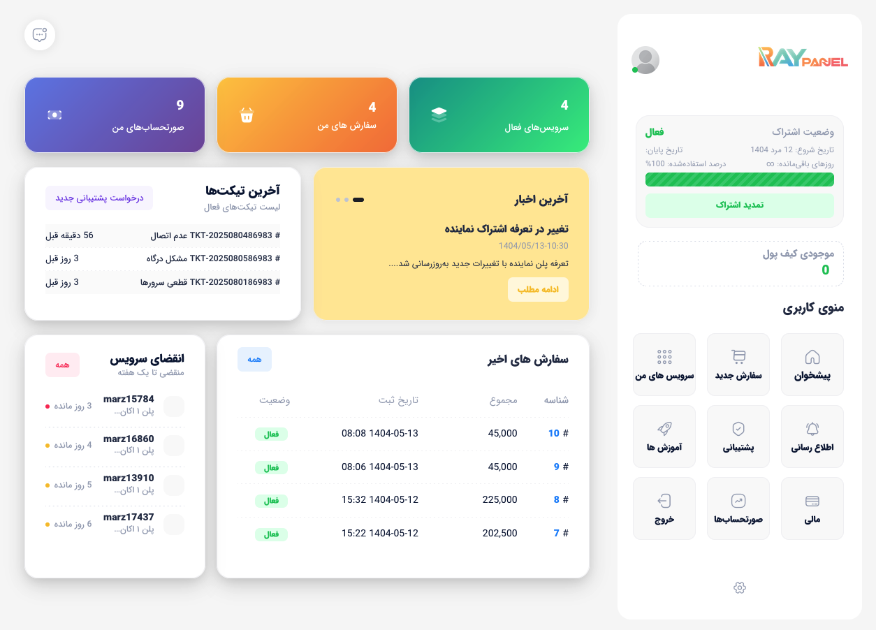 با داشبورد کامل، کاربران می‌توانند سرویس‌های خود را به راحتی مدیریت و تمدید کنند.